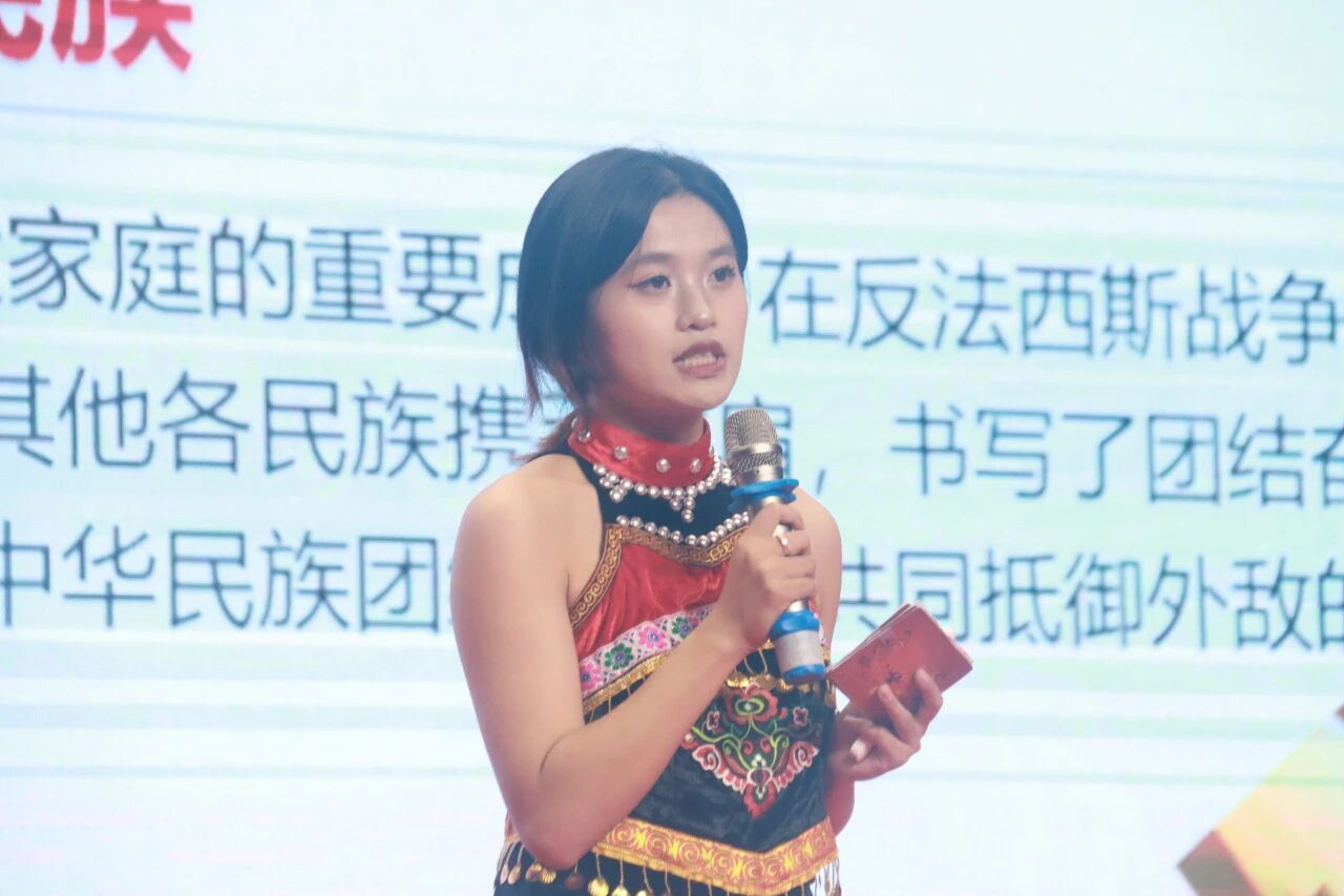 为全面贯彻新时代党的民族理论和民族政策,深入推进中华民族共同体建设,铸牢中华民族共同体意识,引领各族团员青年深刻体悟中华民族多元一体的血脉根魂,牢固树立休戚与共、荣辱与共、生死与共、命运与共的共同体理念,同时深切缅怀世界反法西斯战争中英勇牺牲的英烈,赓续传承伟大抗战精神,同日下午,学校在凯旋校区报告厅隆重举办“工师怀里·石榴花开”铸牢中华民族共同体意识暨纪念反法西斯战争胜利80周年主题宣讲活动。现场集中展示了来自各学院、各民族的优秀原创作品,动情讲述了各民族同胞在抗战中的不屈故事与英雄壮举。