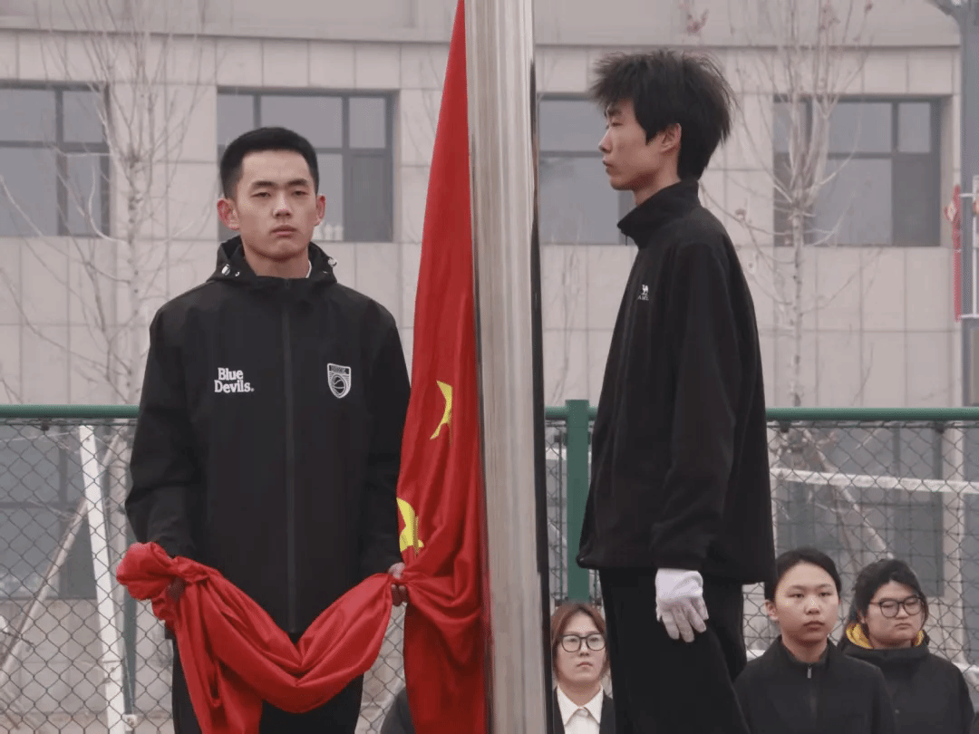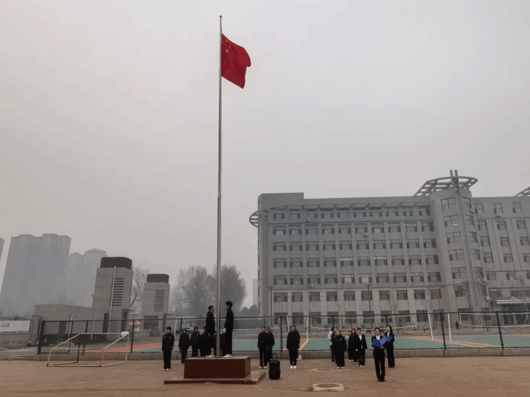 红旗猎猎,迎风高扬,升旗仪式在庄重肃穆的氛围中徐徐展开。同学们身姿挺拔、队列井然,目光澄澈坚定,满怀赤诚与敬意。在静默的默哀与庄严的行礼中,缅怀先烈、致敬过往,汲取前行力量。先辈的英雄壮举如星火璀璨,深植于心、照亮前路,激励青年学子在新时代勇毅笃行、逐梦奋进。